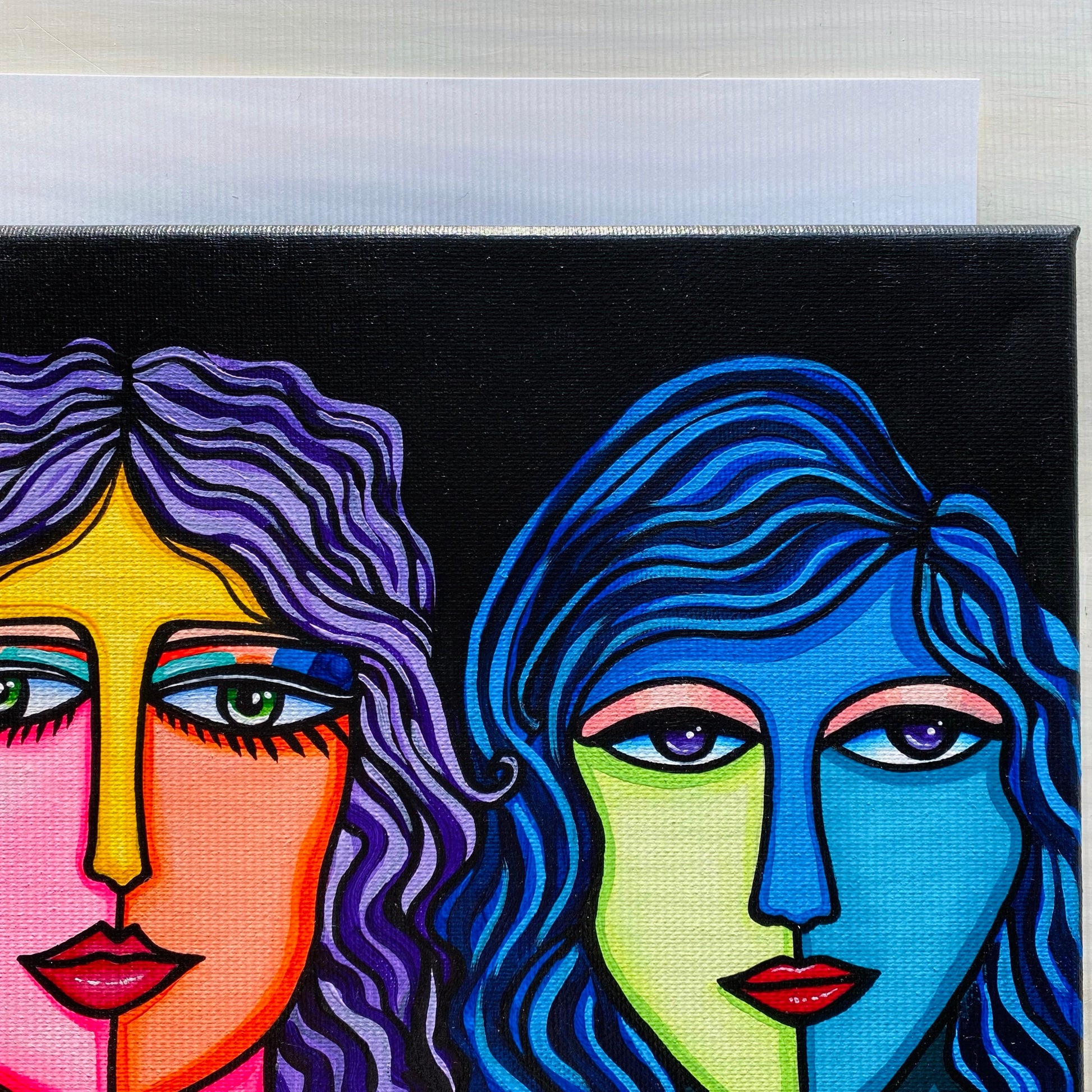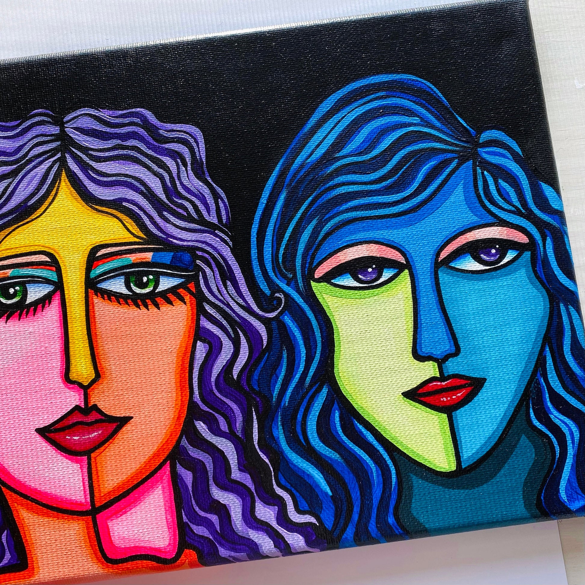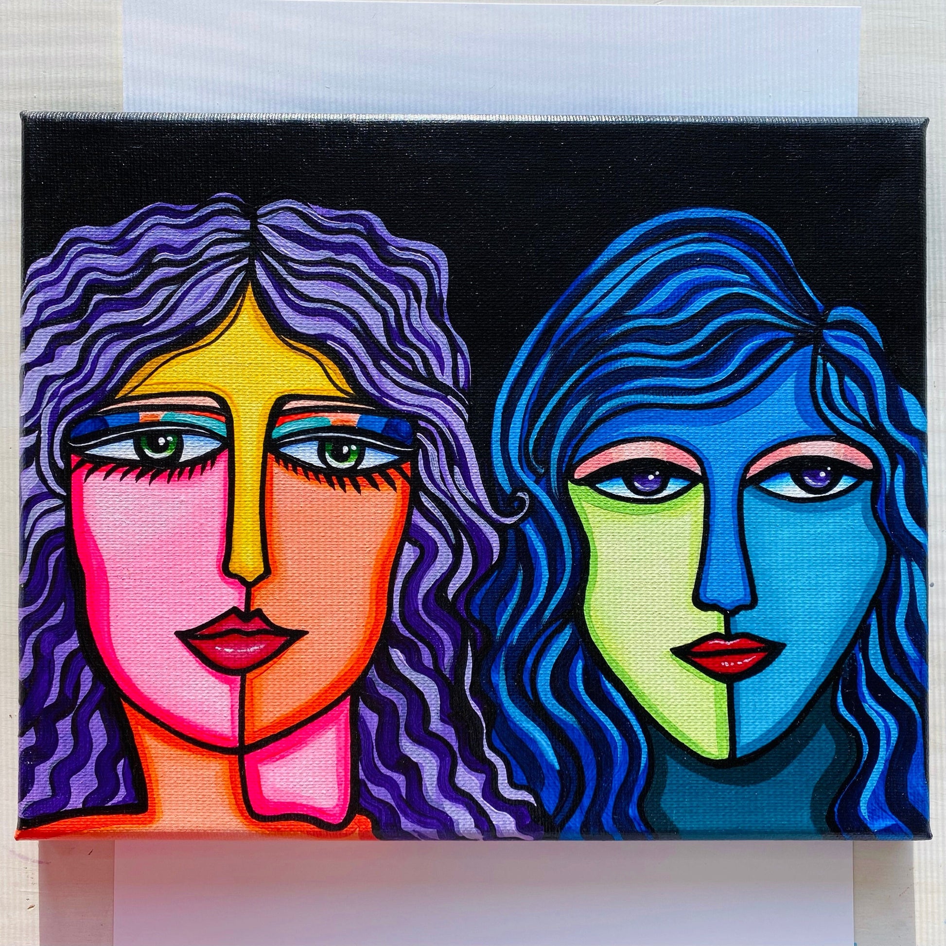 “Party of Two” abstract painting embellished with colorful, bold hues. Created with acrylic paint on 8 by 10 inch canvas. Unique and one-of-a-kind decor that adds joy to any room! Handmade from Megan Rose’s “Feminine Abstraction” collection.