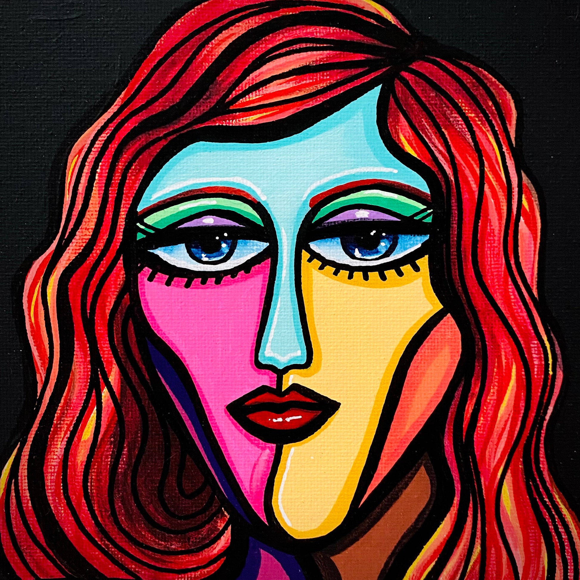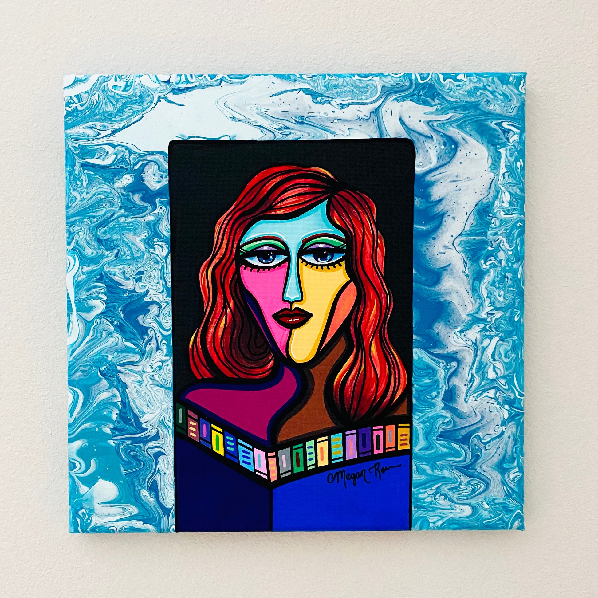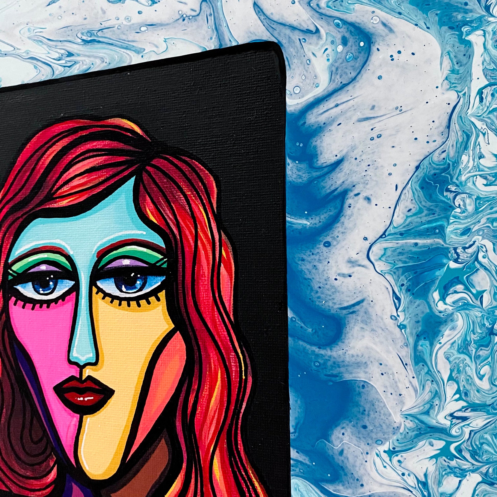 “Lisa” abstract painting embellished with an ocean-esque background of a beckoning sea. Created with acrylic paint on 12 by 12 inch canvas. Unique and one-of-a-kind decor that adds joy to any room! Handmade from Megan Rose’s “Feminine Abstraction” collection.